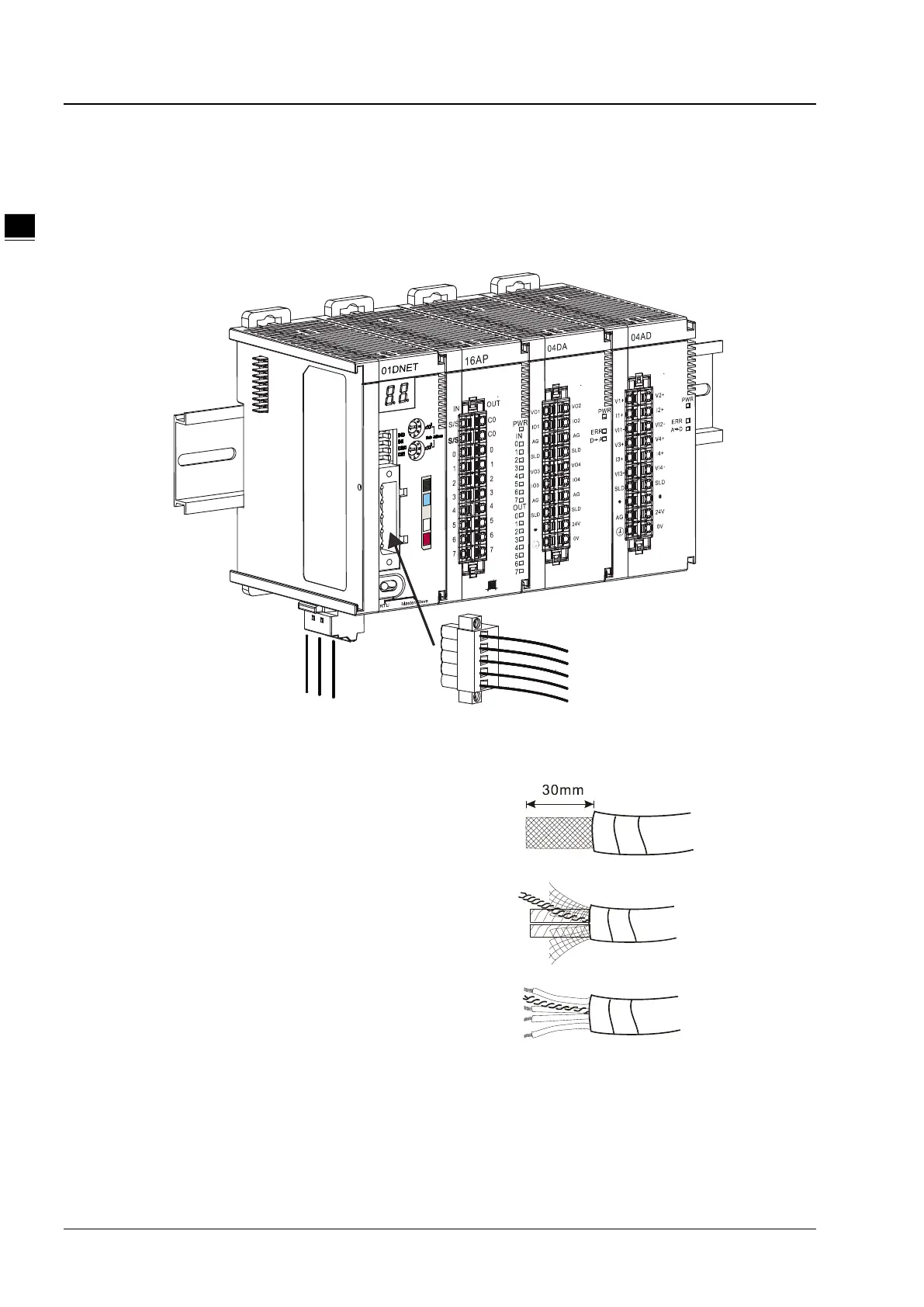 cable for approx. 30mm. DO NOT damage the