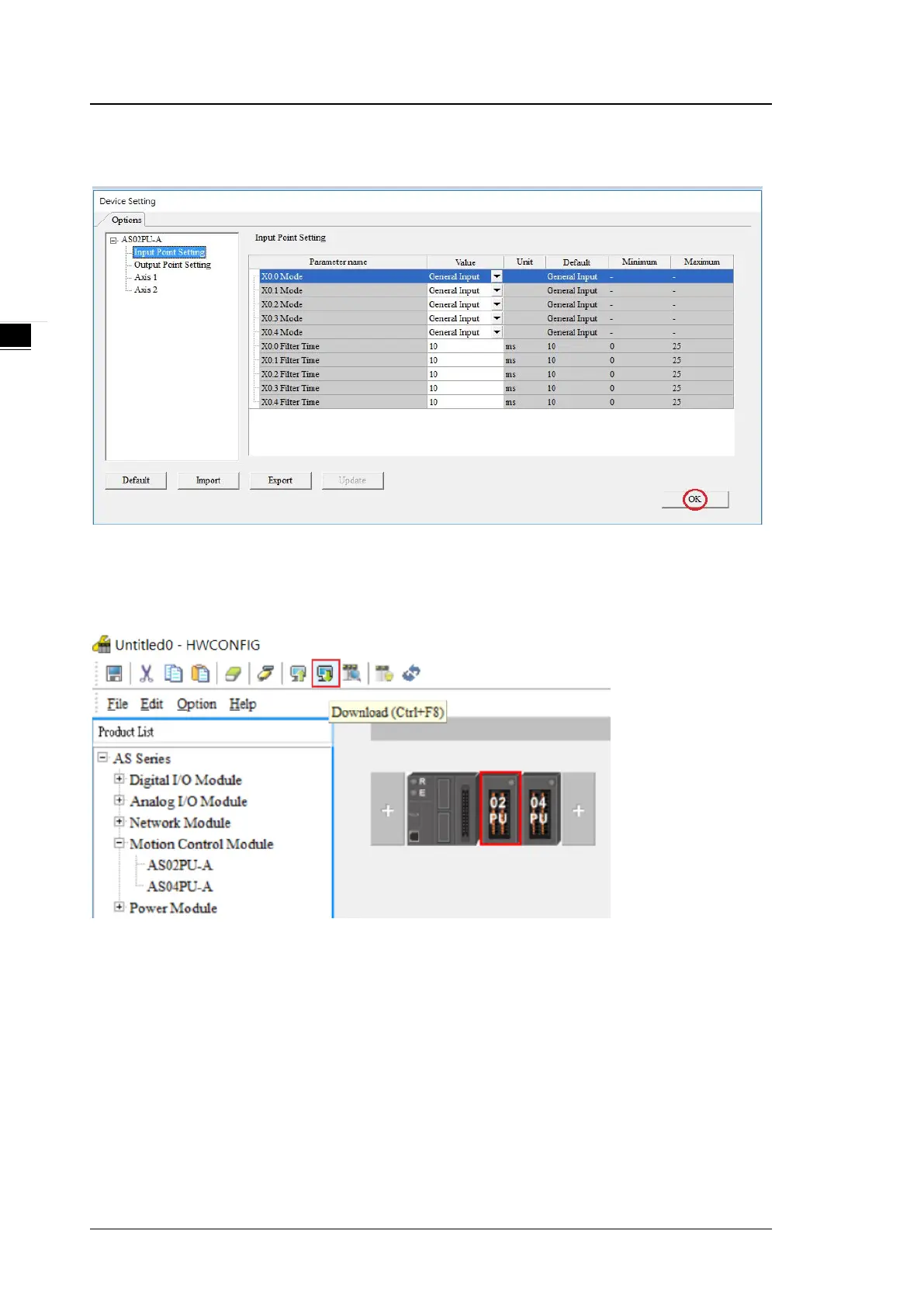 (5) Click Download on the toolbar to download the parameters. Note that you cannot download the