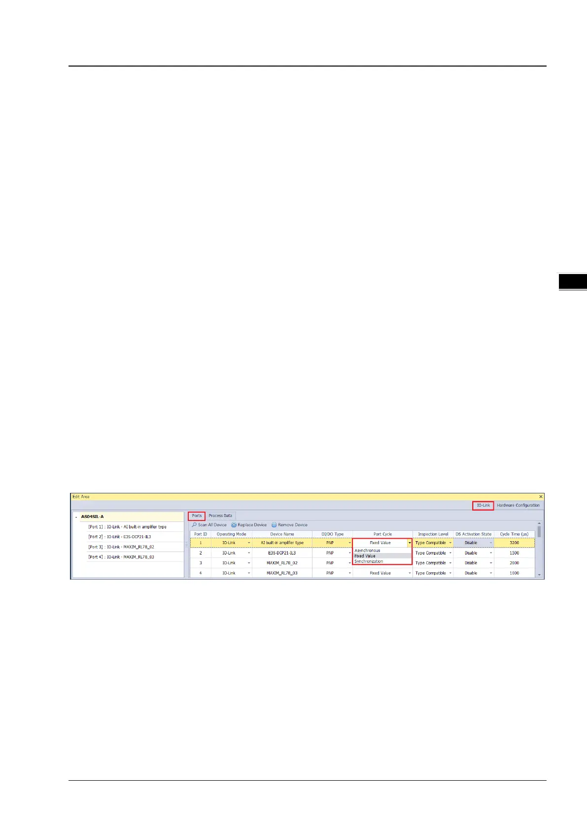 (1) Asynchronous: AS04SIL-A and IO-Link device defines the cycle time for each port and uses the shortest update cycle