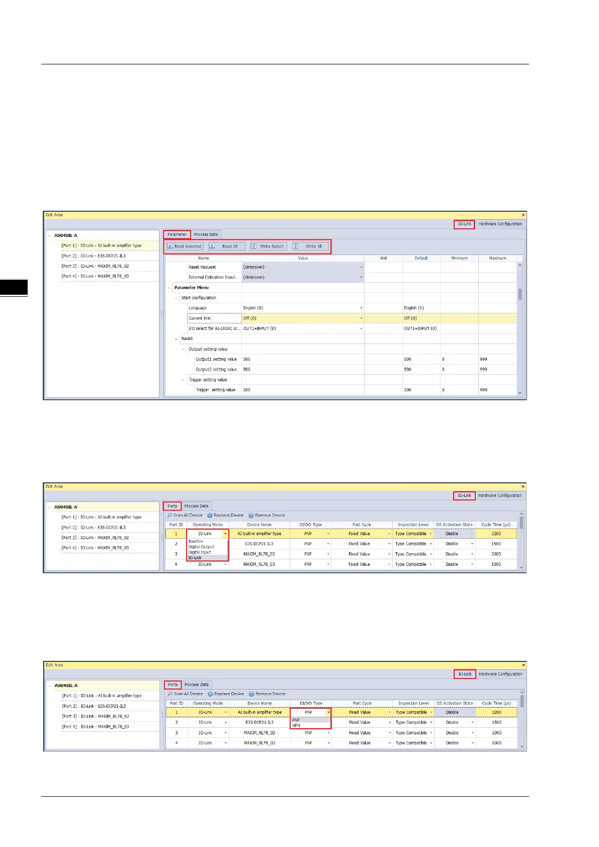 You can select one operating mode among the modes of Inactive, SIO (Digital Output, Digital Input) and IO-Link for
