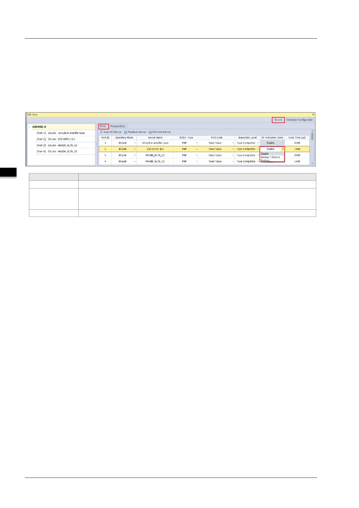 13.3.2.3 Backup and Restoration of Parameter Setup in IO-Link Devices
