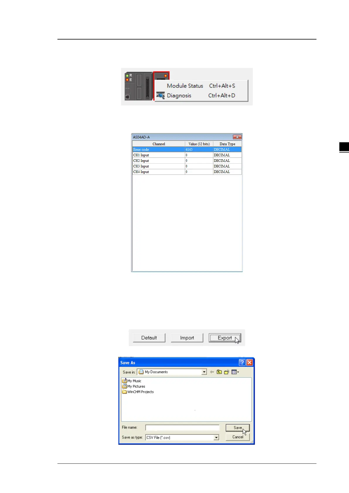 (1) Click Export in the Device Settings dialog box to save the current parameters as a CSV file (.csv).