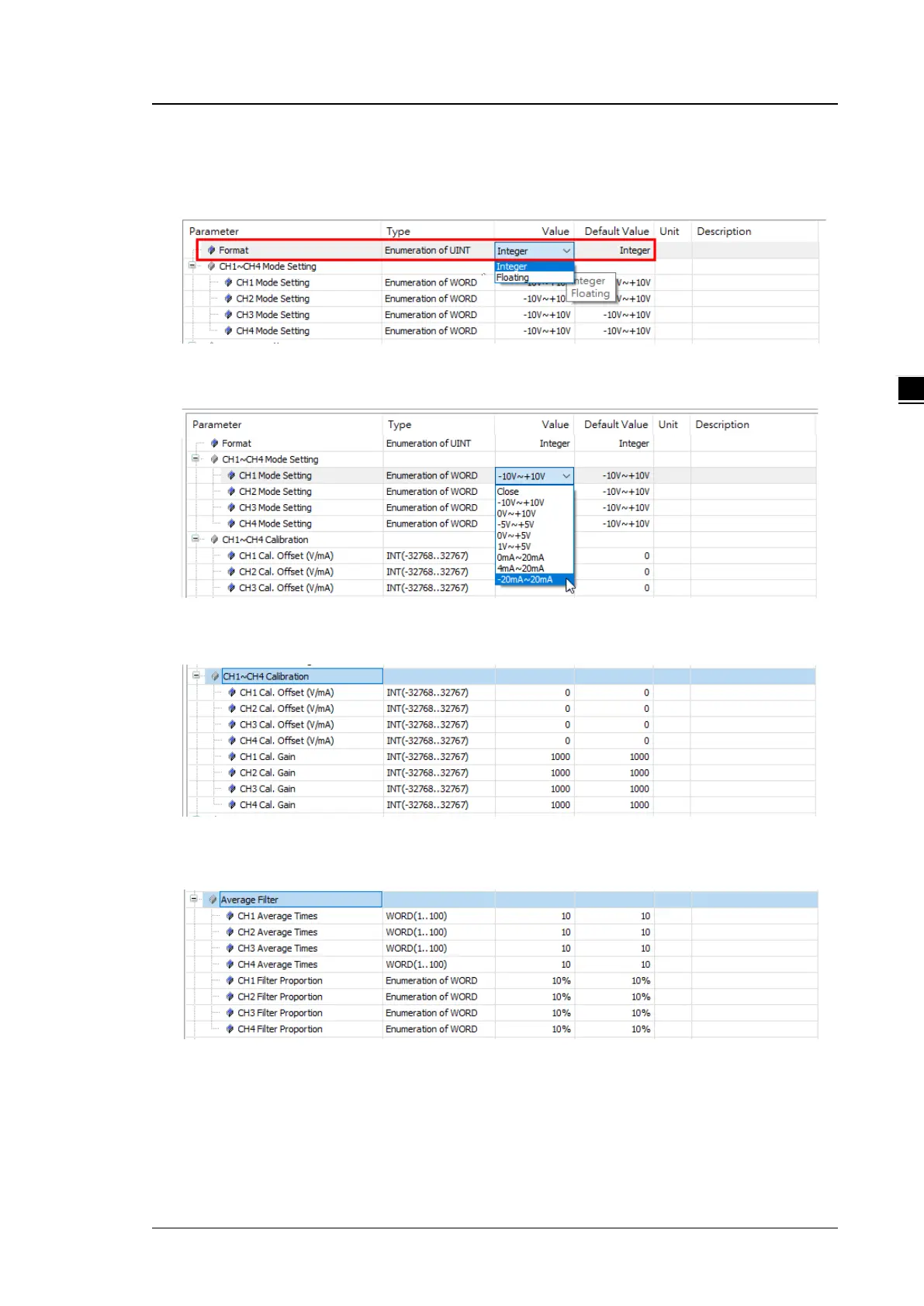 (1) You can set up the value format to Integer or Floating for Channel 1 to 4.