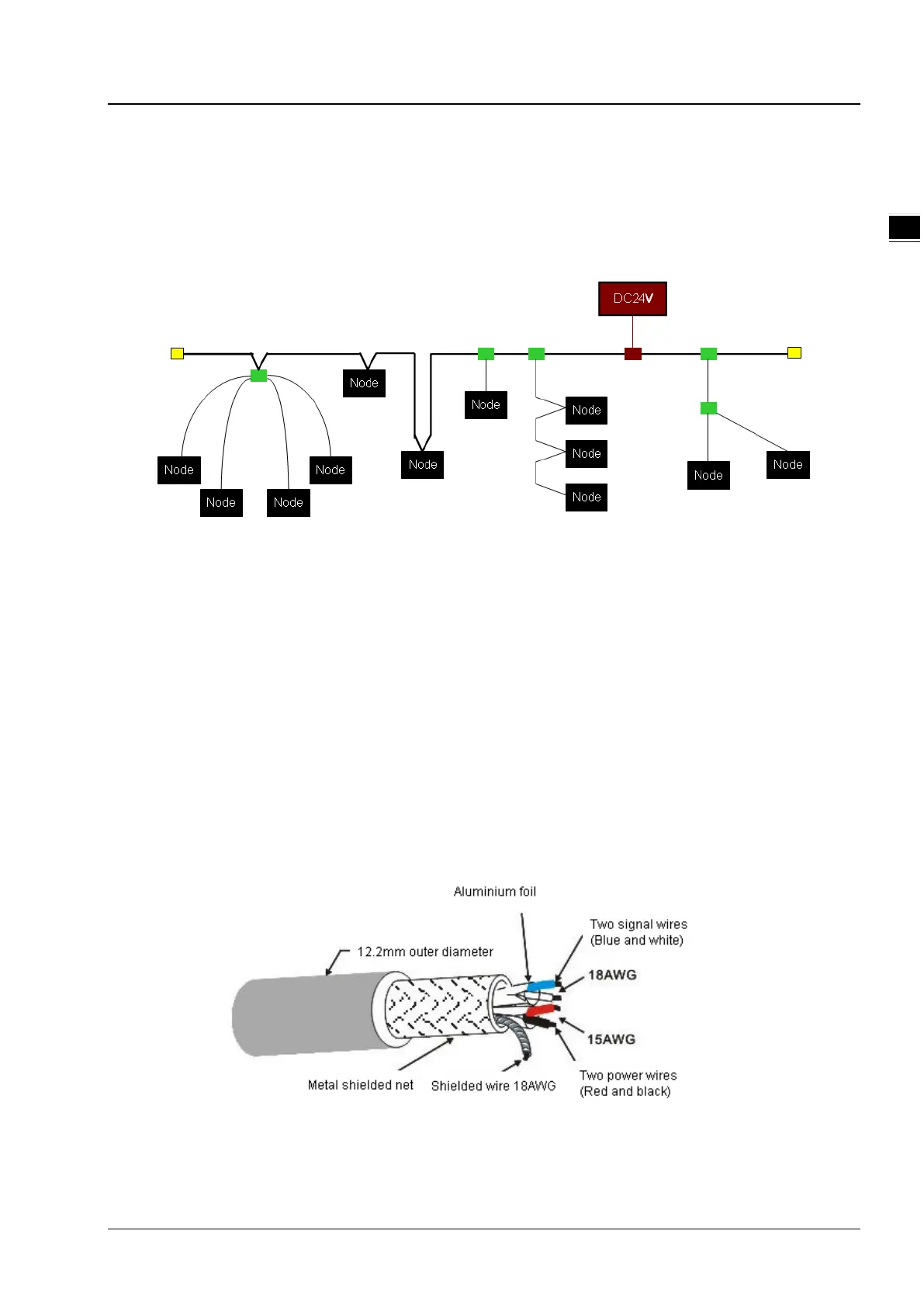 The terminal resistors must be installed to the two ends of the trunk cable only. Since the blue wire and white wire are