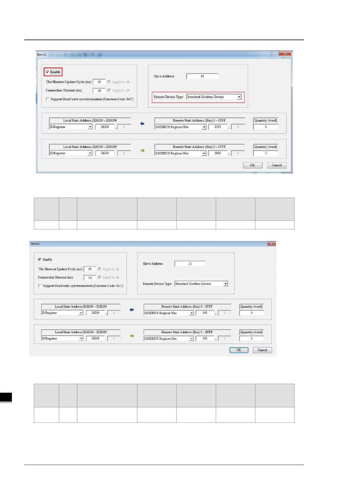 Select PLC devices as the Remote Device Type, enter the PLC parameters, and check Enable.
