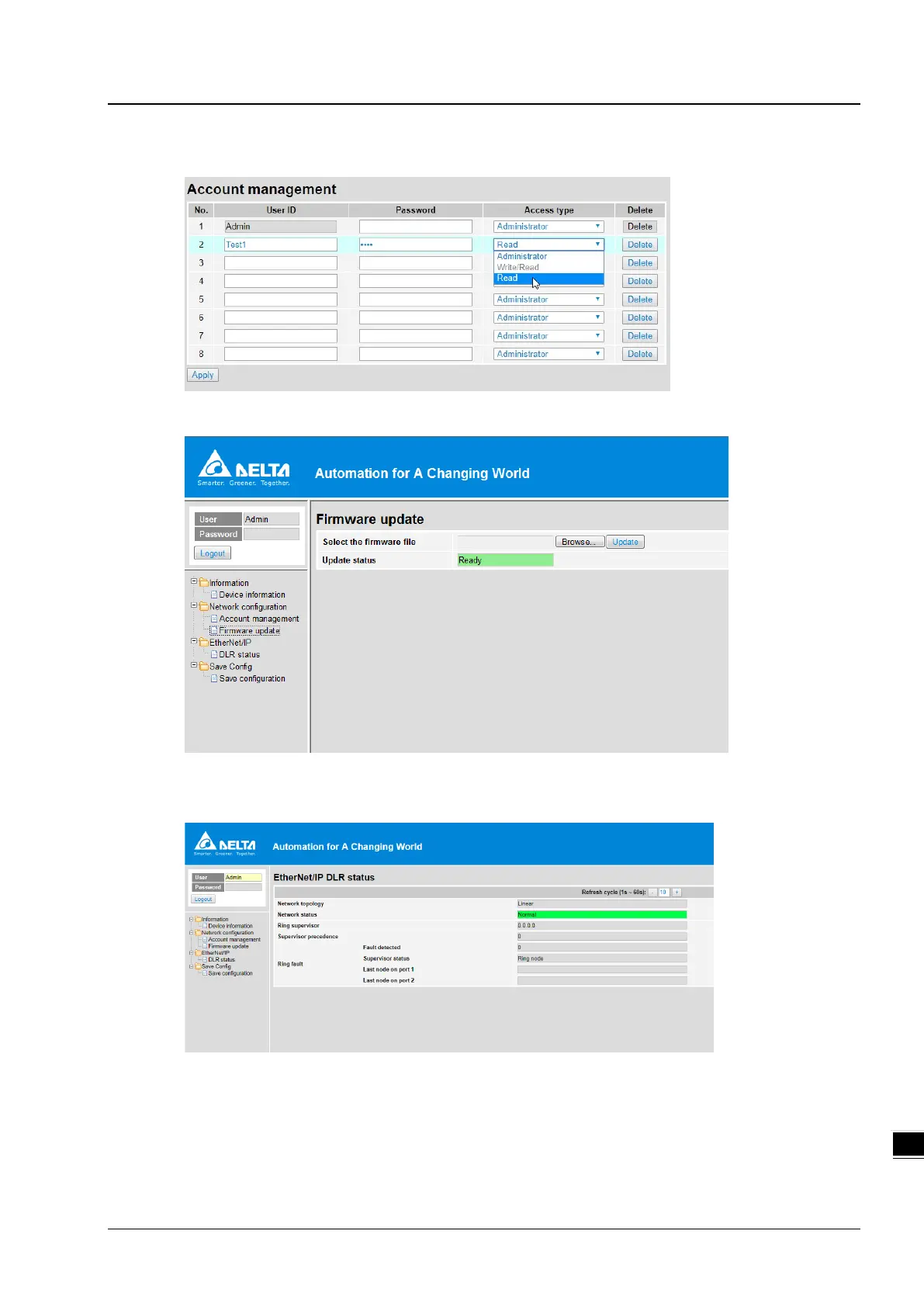 d. Account Management: You can set 2 kinds of access types, Administrator and Read. After the setting is done,