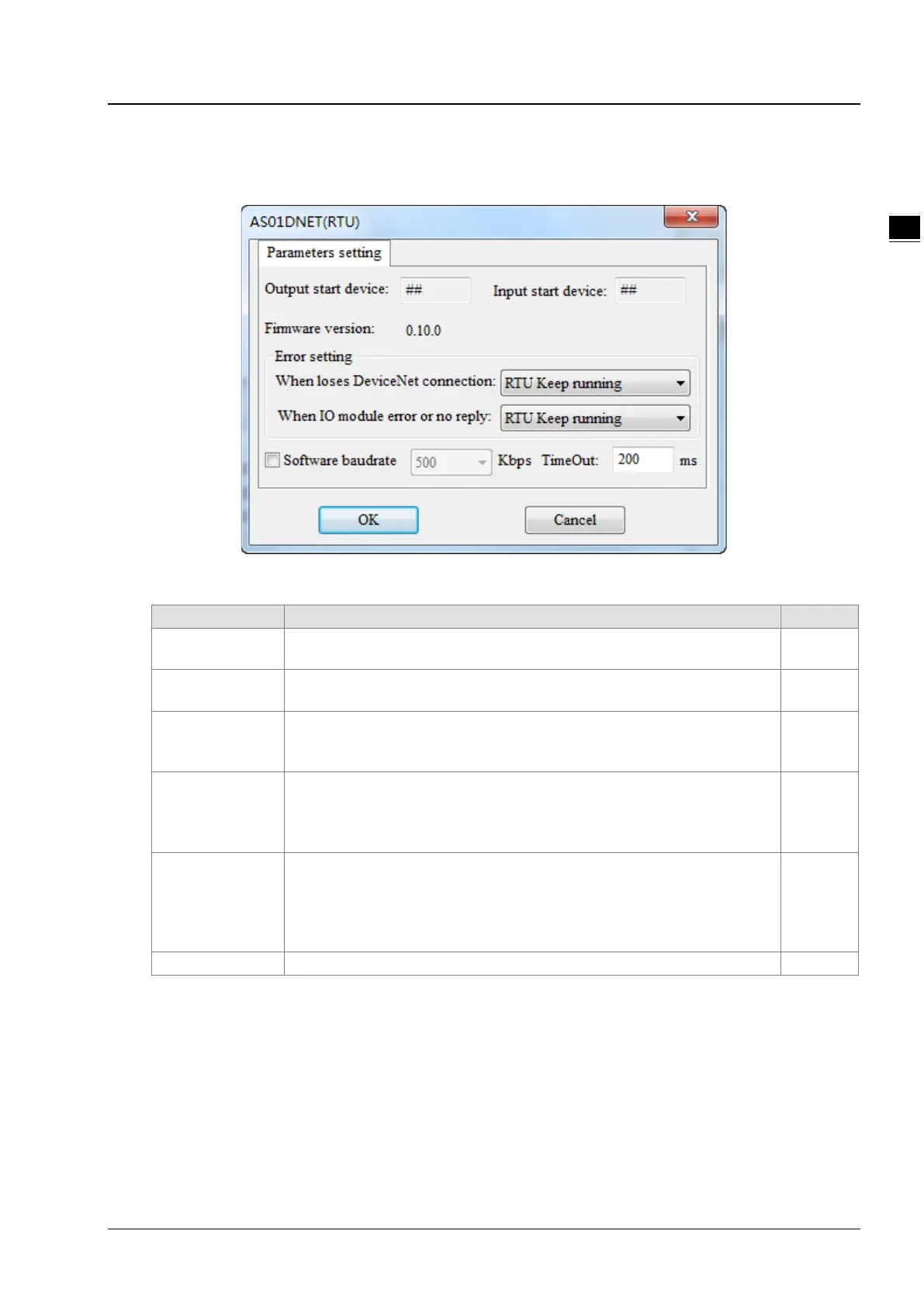 Double click AS01DNET (RTU) icon on the far left of the configuration page. Then the parameter setting interface of