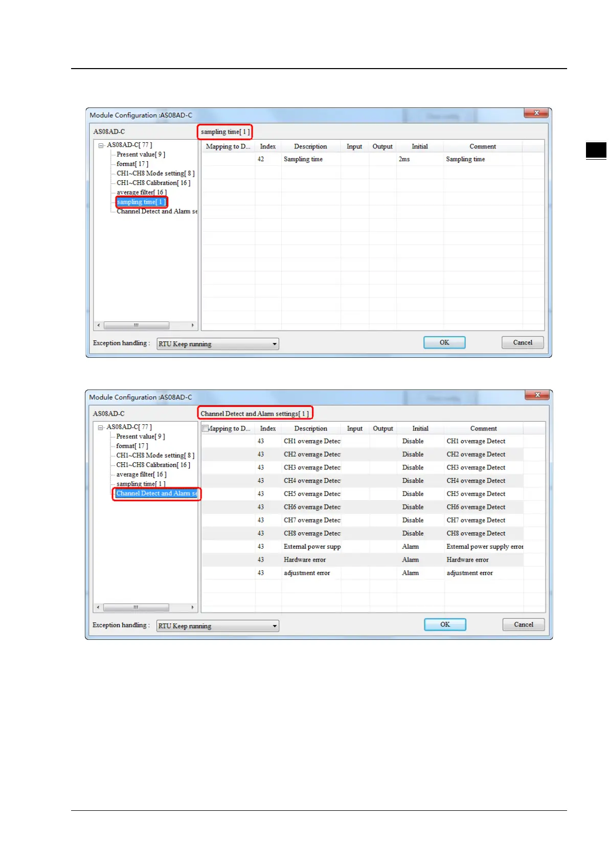Channel Detect and Alarm settings