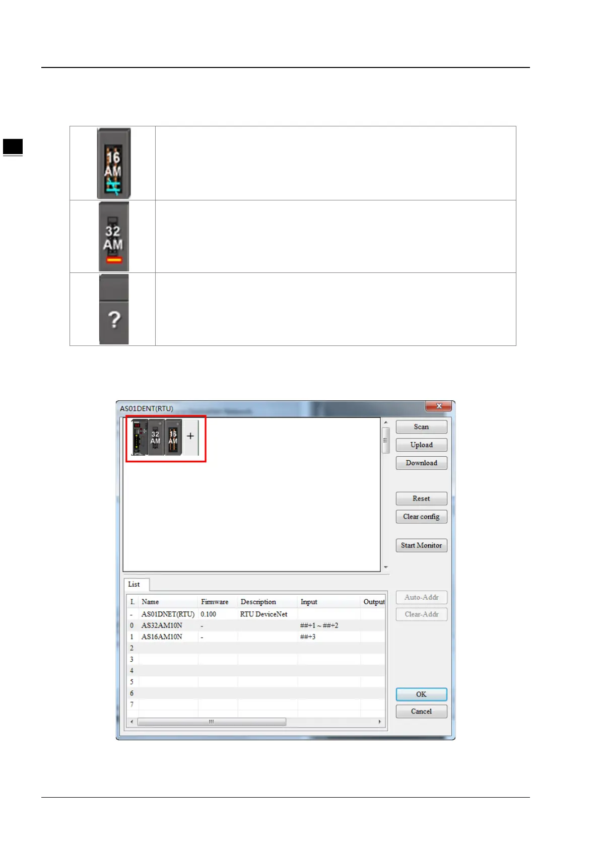 After the I/O modules connected to AS01DNET (RTU) are scanned, abnormal icons may appear.
