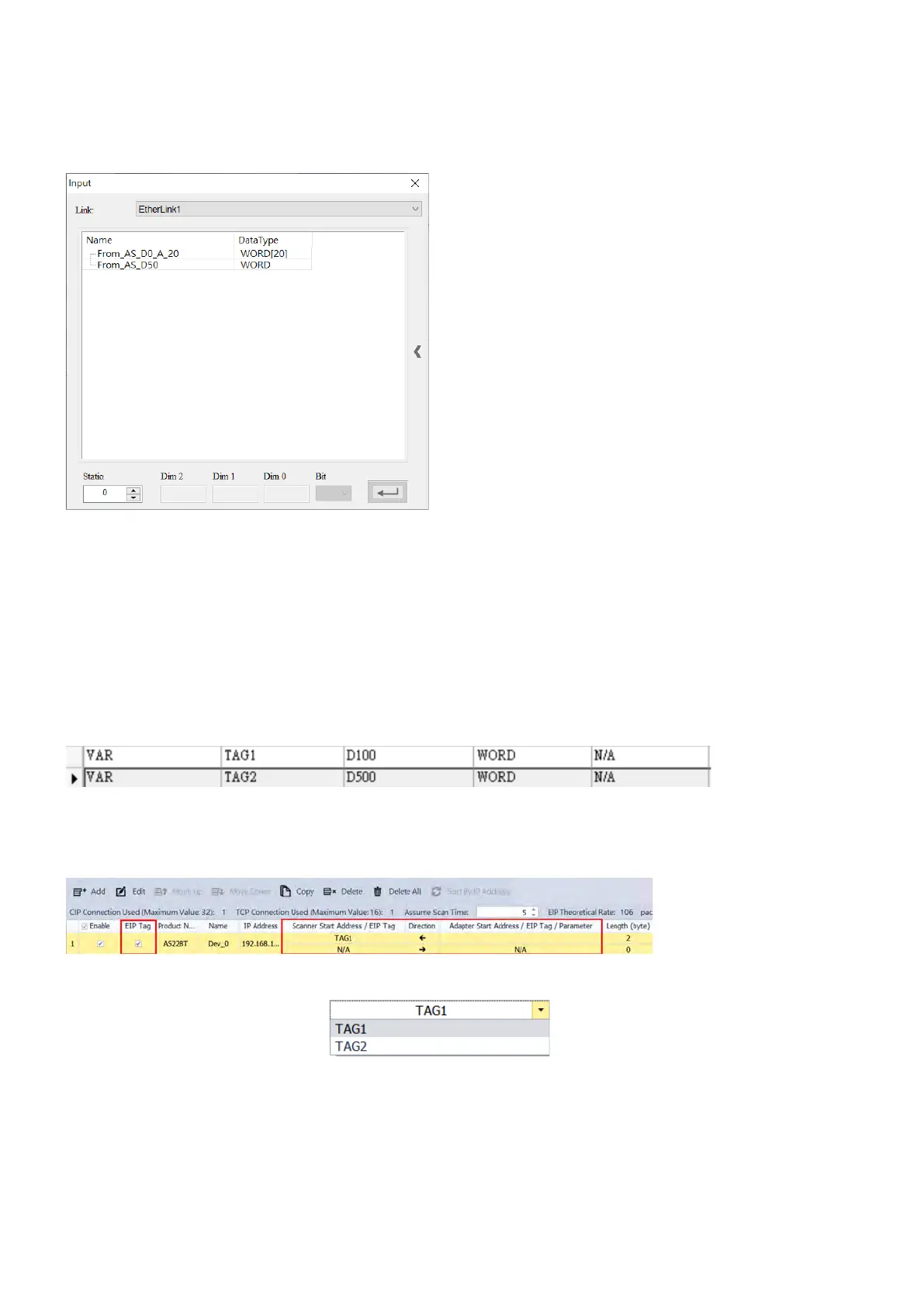 party device, after importing the EDS file, the procedures of using tags to perform data exchange are the
