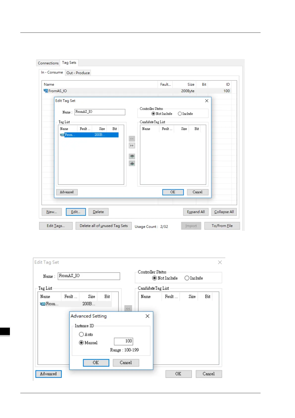 6. Click Advanced button in the Edit Tag Set window and set the Instance ID to Manual and then input the Instance