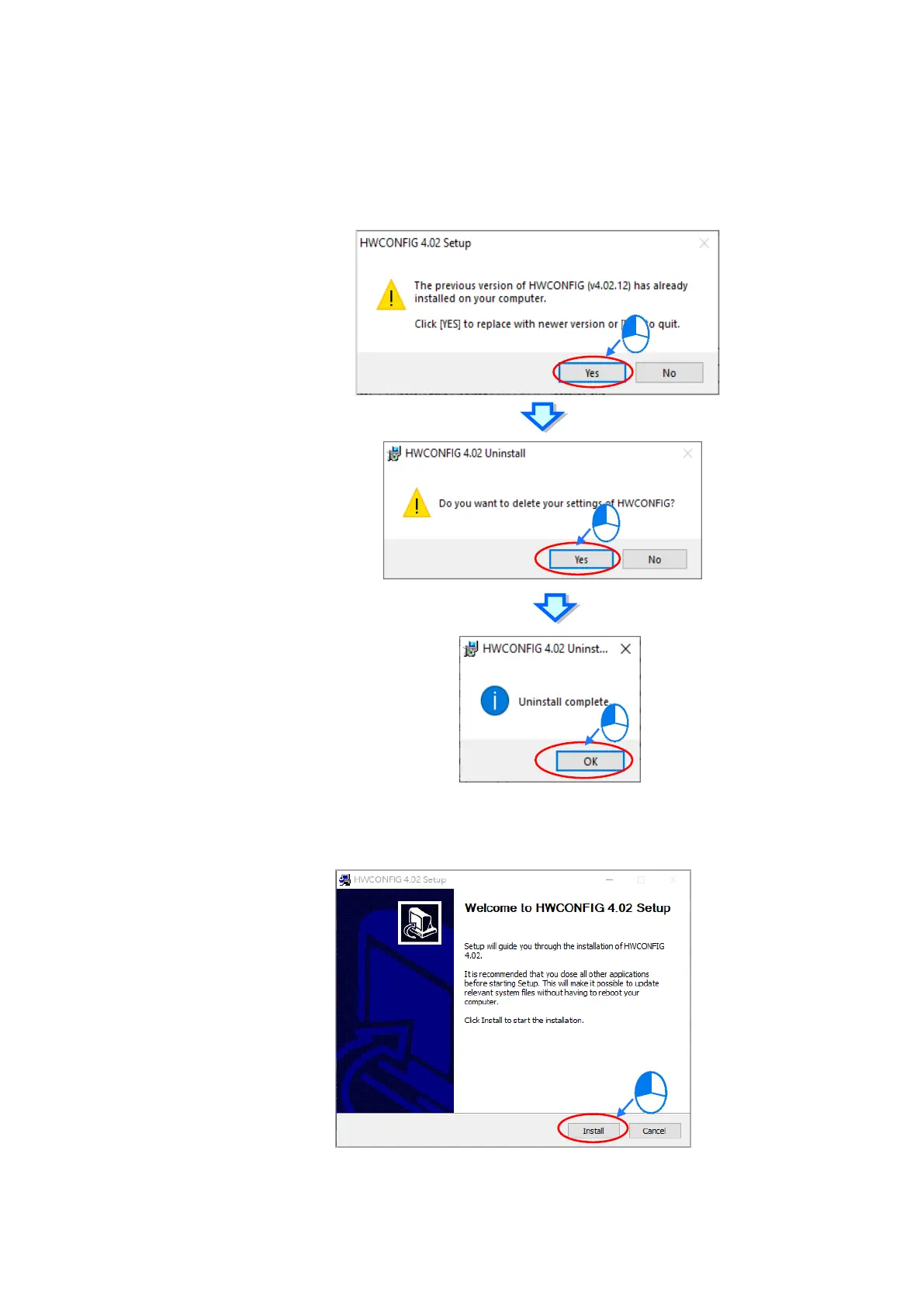 (12) Next the HWCONFIG is about to be installed. If there is a previous version of HWCONFIG installed in your