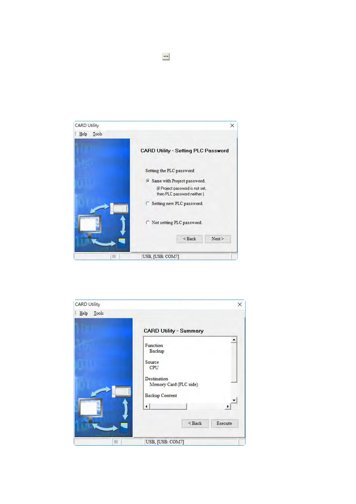 the PLC password is also not set. When you select Setting new PLC password, the wizard looks