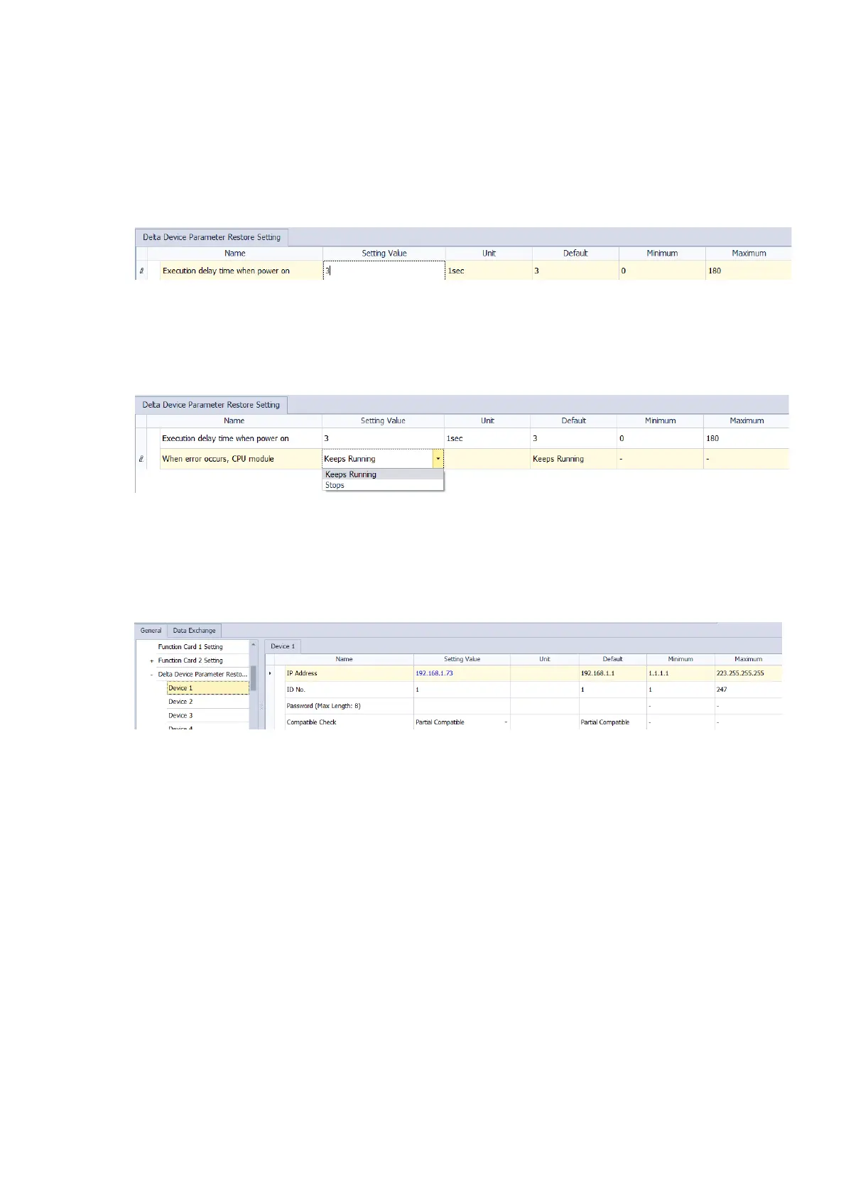 Delta Device Parameter Restore Setting: