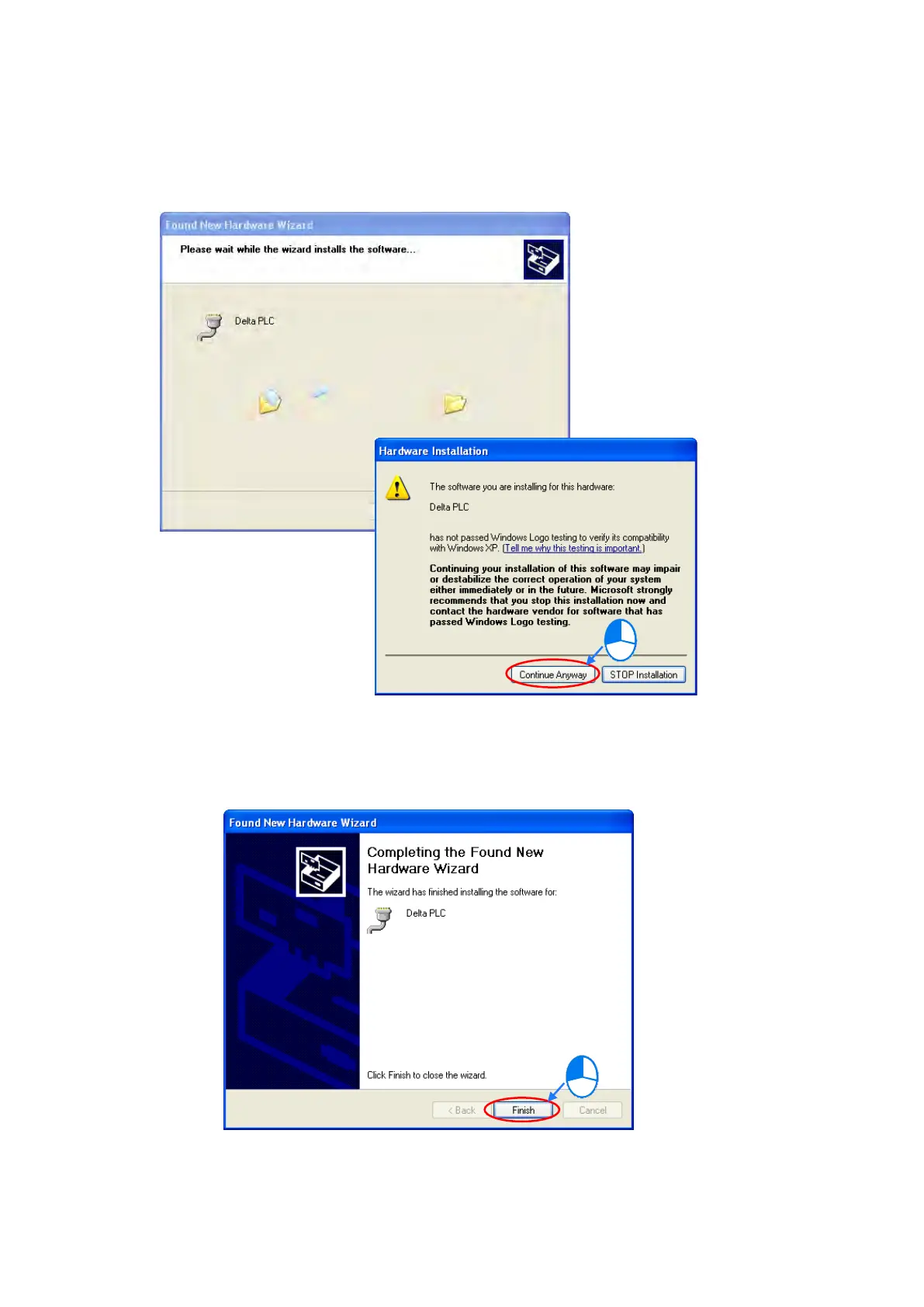 (4) The system installs the driver. If the Hardware Installation message appears during the installation, click