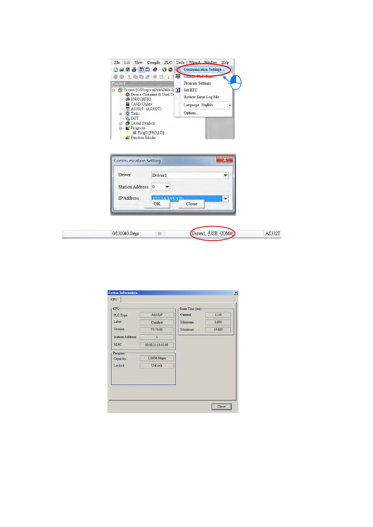 computer communicates with the CPU module normally, the related information retrieved from the PLC