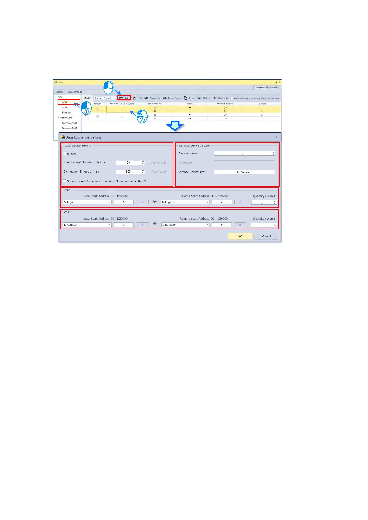Under the Data Exchange Tab, you can set up data exchange for COM communication, Ethernet communication and