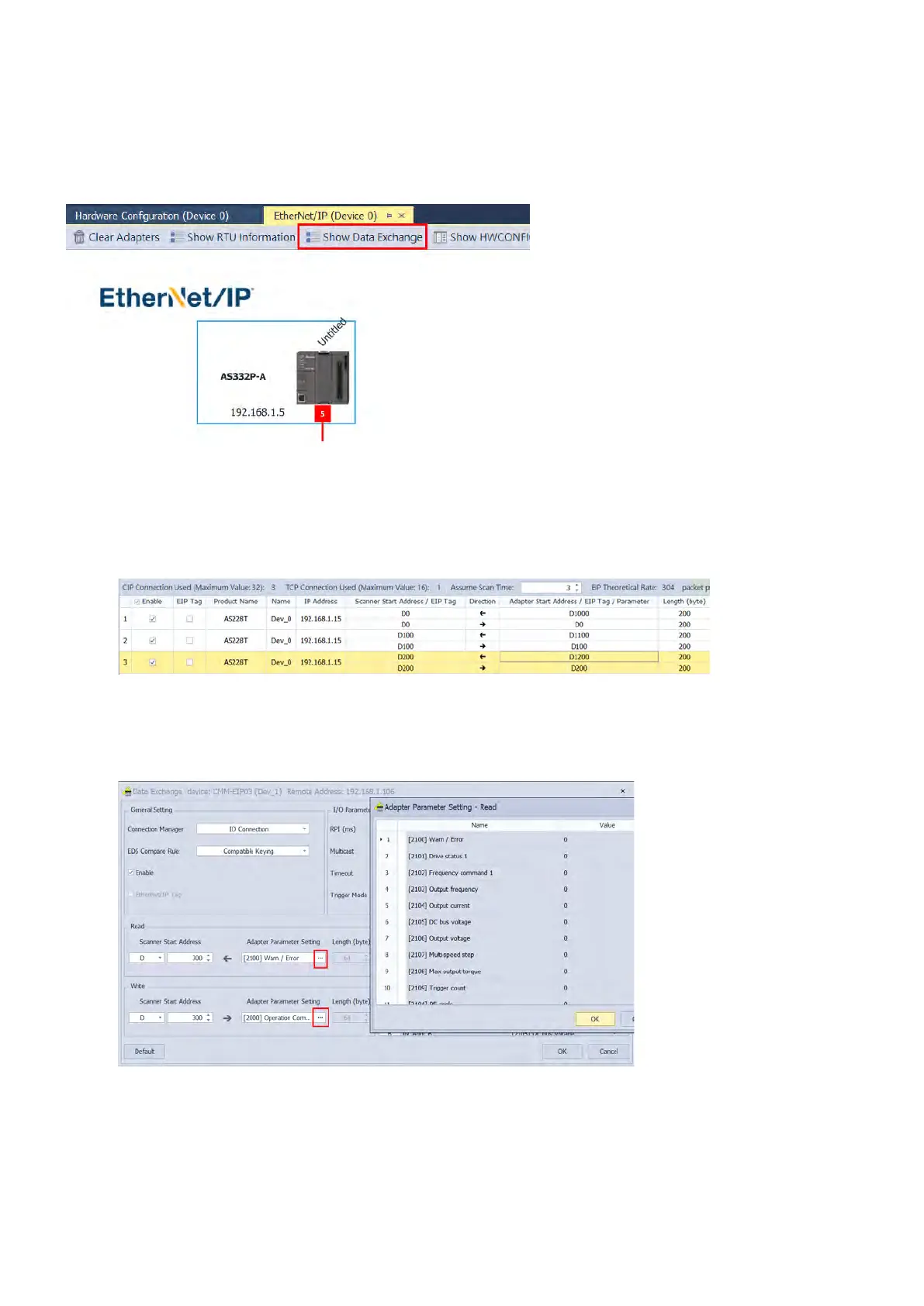 exchange. You can edit the addresses and data lengths for data exchange. Unit: 2 bytes.