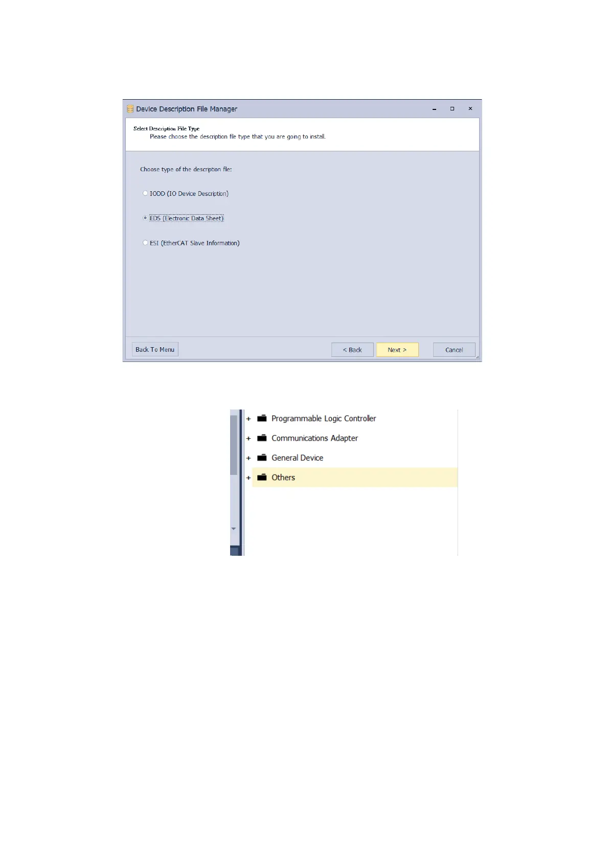 4. Select EDS (Electronic Data Sheet) and click Next.