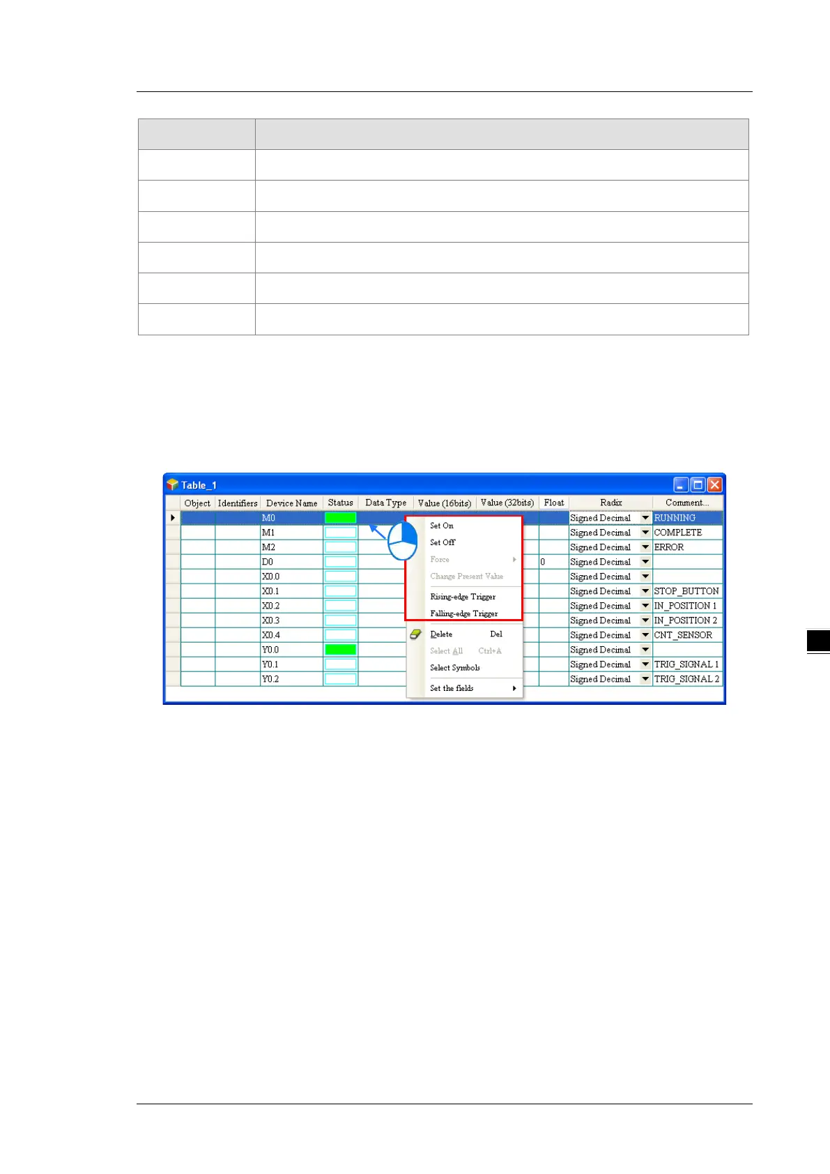 context menu in the program editing window. You can change the item state or the item value by clicking an