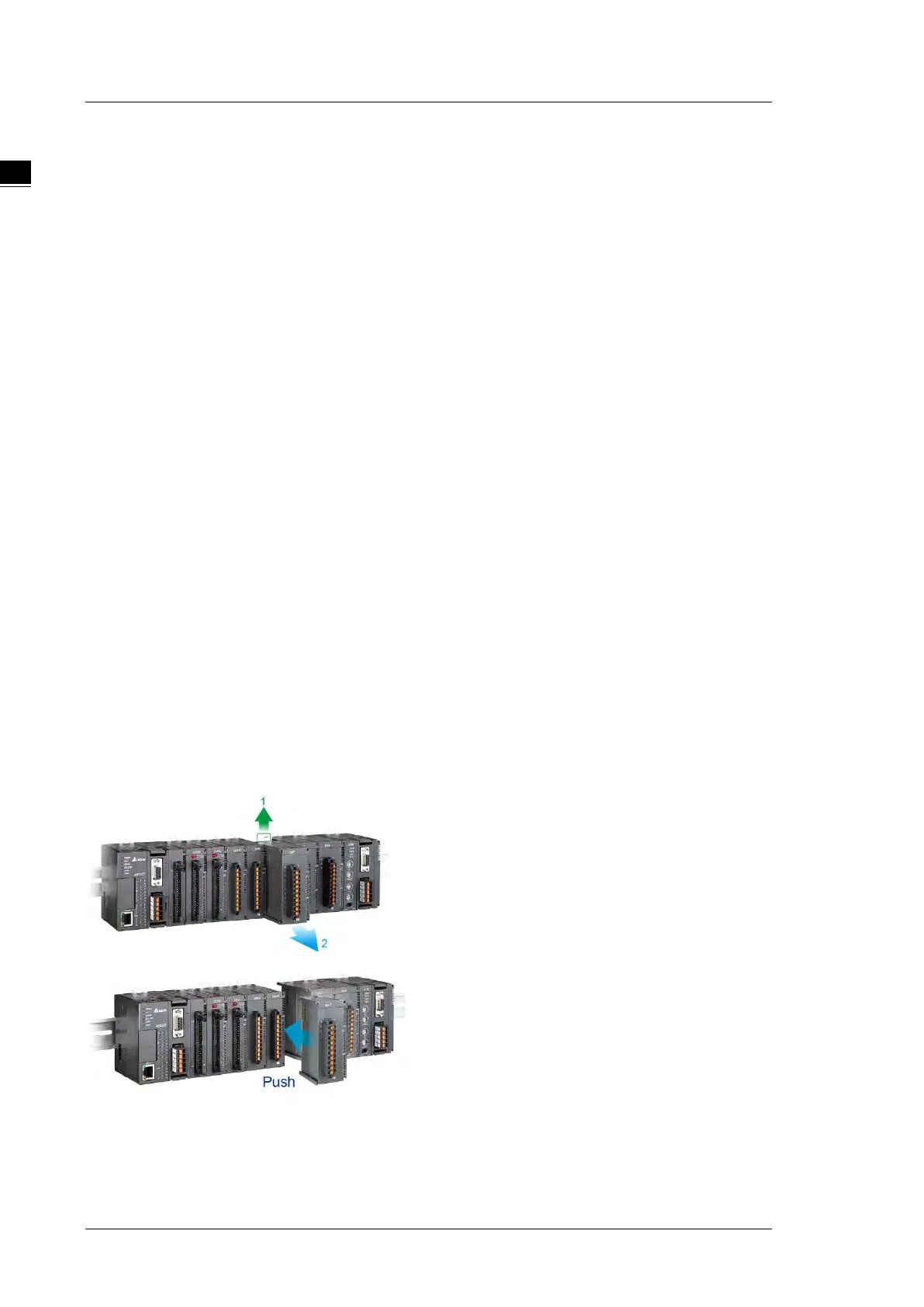 The AS Series PLC supports slide-and-lock installation on I/O modules when the power is off. After