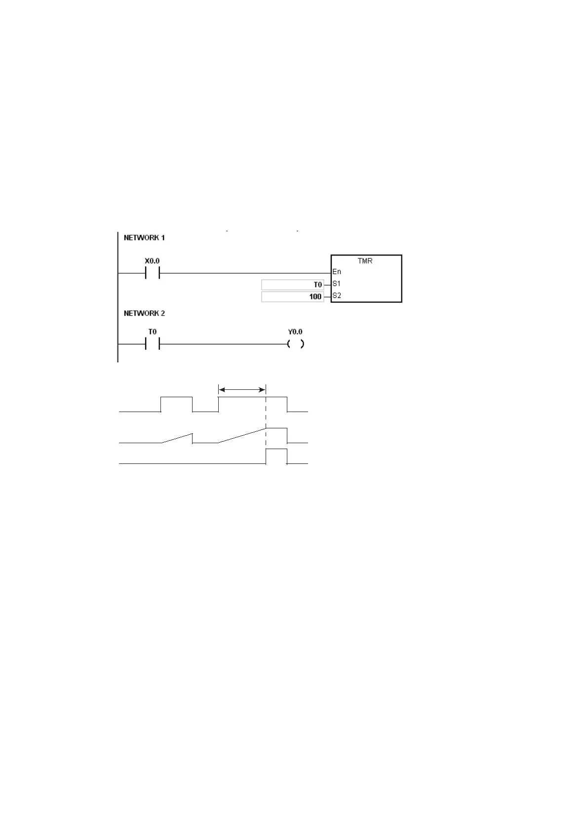 When X0.0=OFF or the power is off, the value of the timer is 0 and the output coil T0 is OFF.