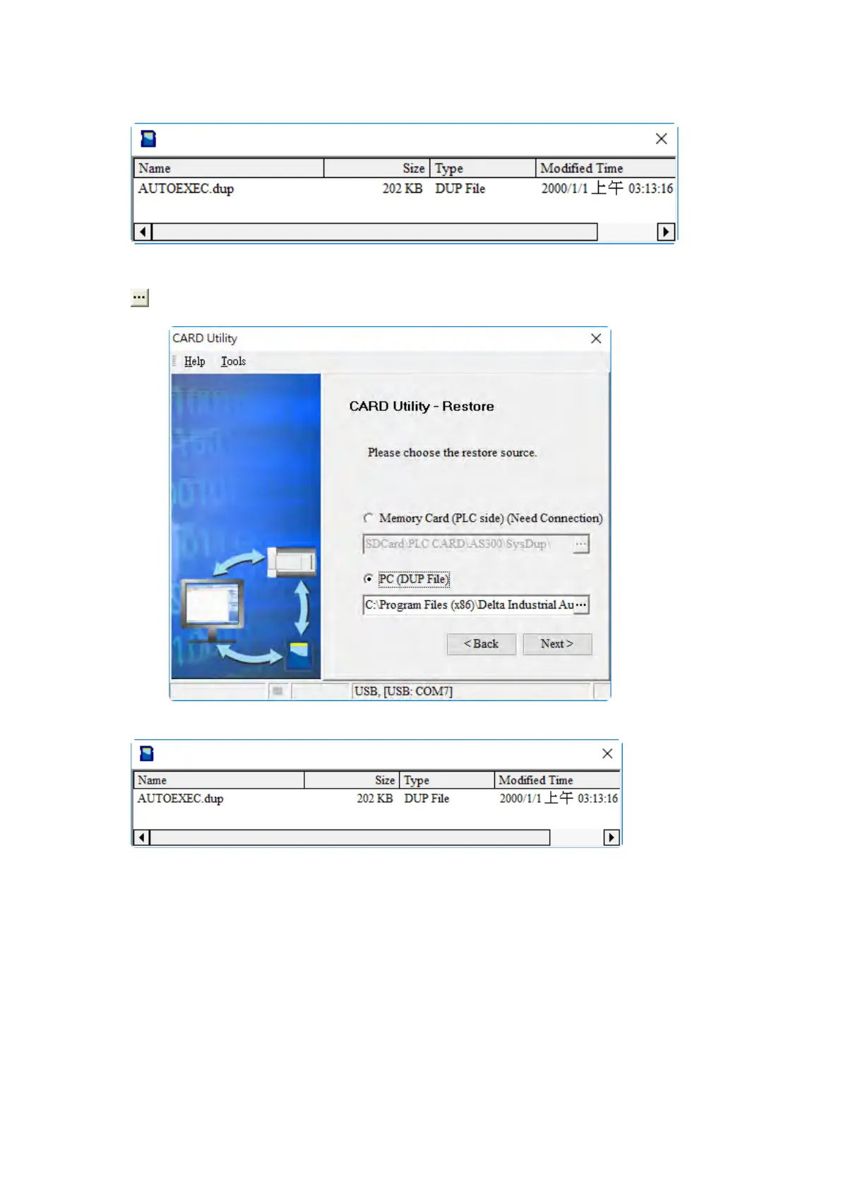 b. If you select PC (Need Connection), the backup files in the PC display in a window after you click