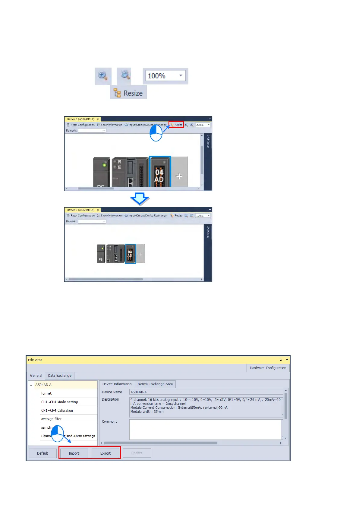 import. When importing, the system checks if the file format and the module name are matched. If not, an error message