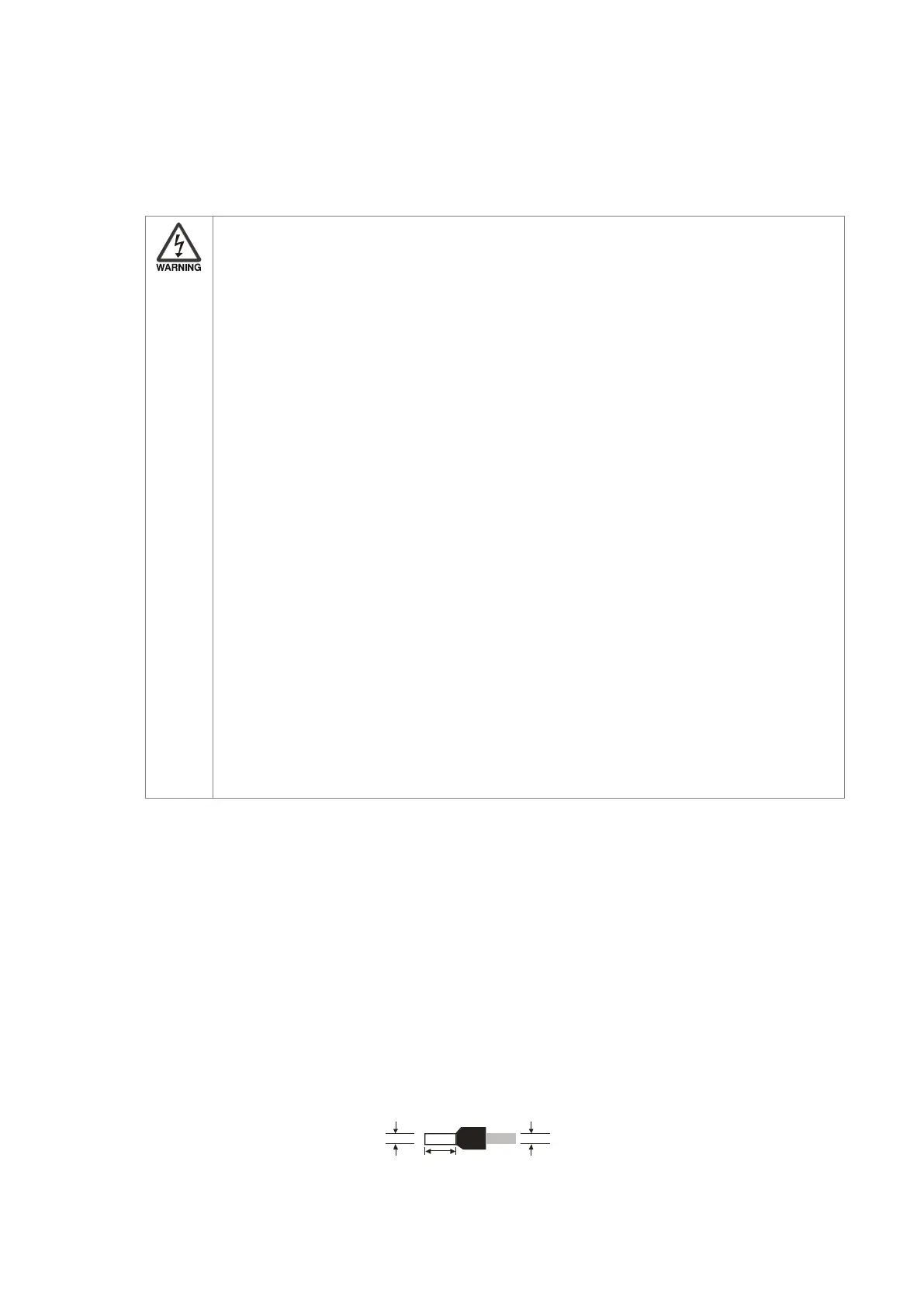 1mm pin-type terminals. Only use copper conducting wires with a temperature rating of 60/75°C.