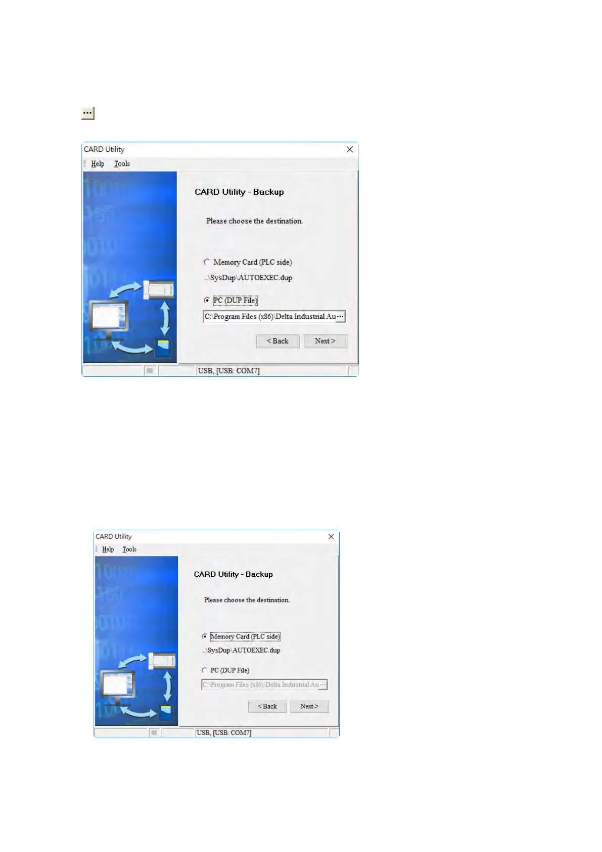 a. If you select Memory Card (PLC Side), the filename of the backup file is AUTOEXEC.dup, and the