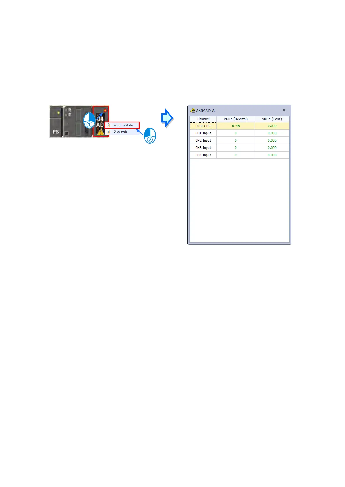 This functionality is only available for digital IO modules, analog IO modules and temperature modules. Right-click the