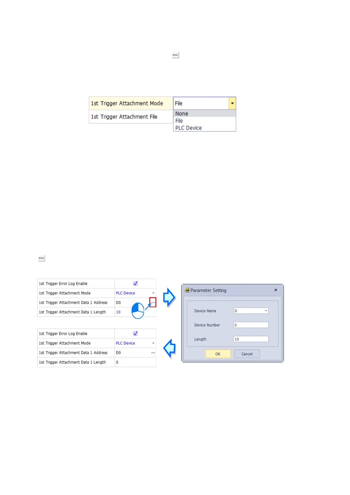 For example, if the condition is met, the values in D0~D9 will be sent as an attachment.