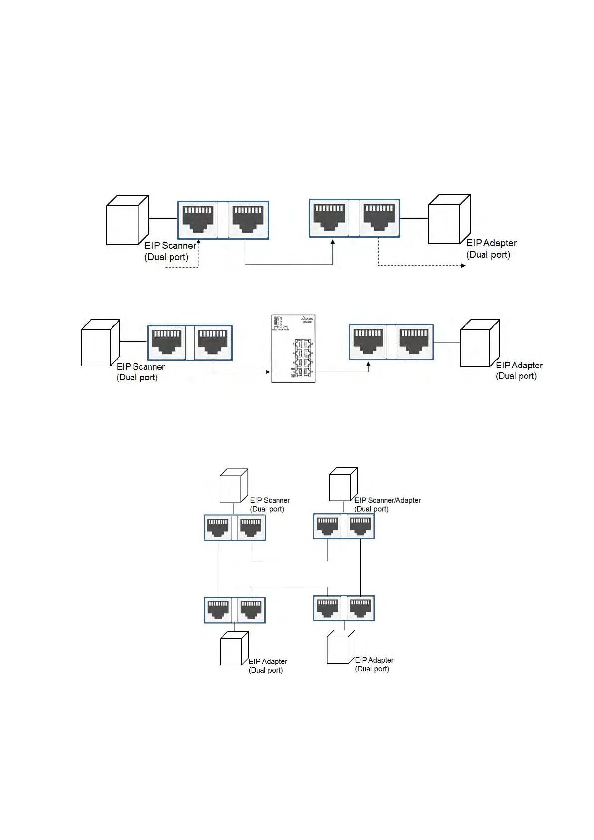 A DLR function is required to create a ring topology. Refer to Section 9.9.2 for DLR supported devices.