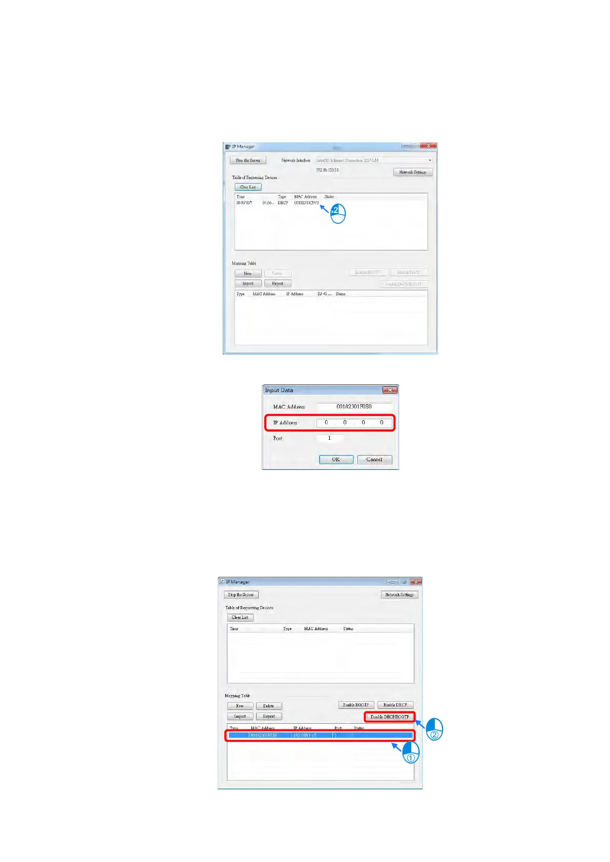 Double-click the listed MAC address for your device to open the Input Data dialog box.