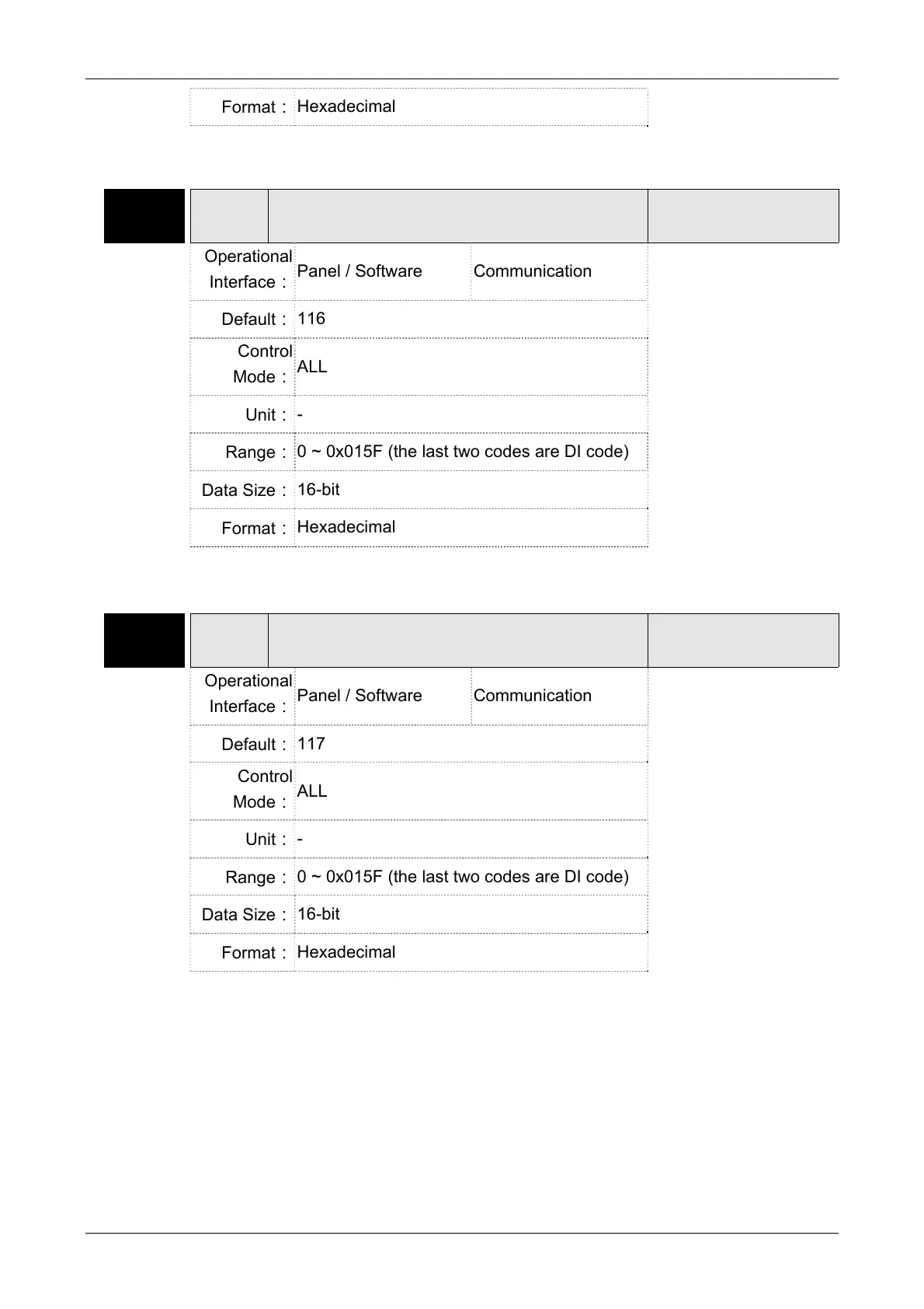 0 ~ 0x015F (the last two codes are DI code)