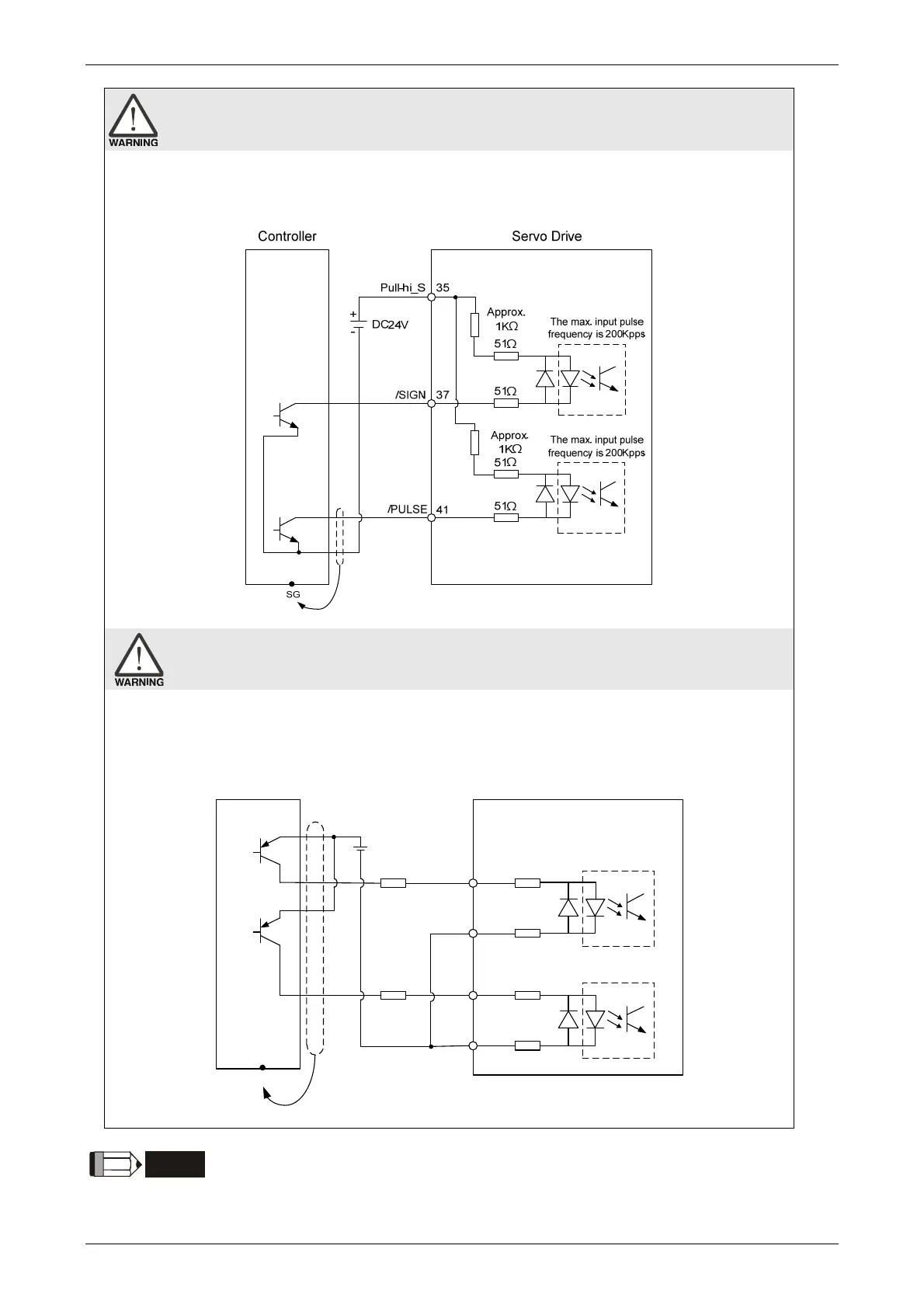 C3-3: The source of pulse input is open-collector NPN equipment and applies the external