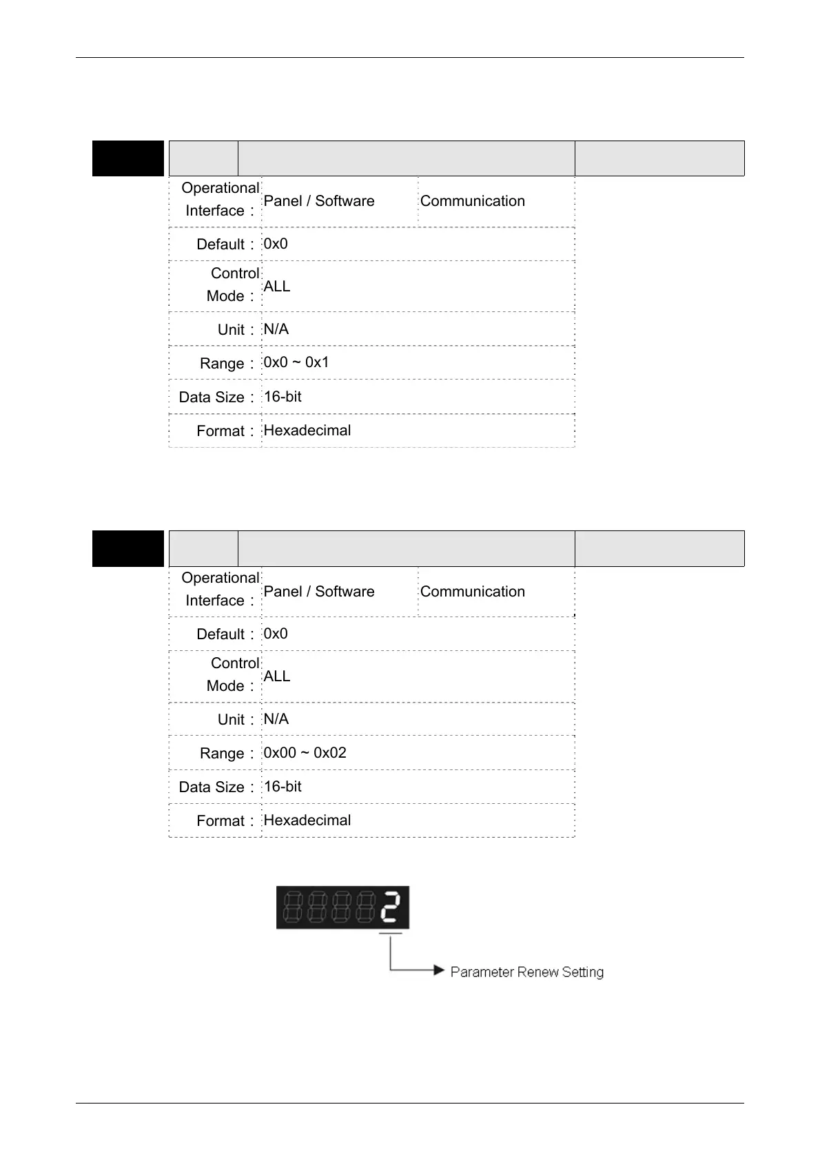 1: Renew the encoder data to parameters P0-50~P0-52 only.