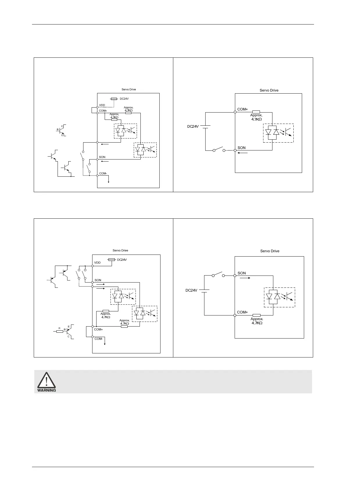 Caution: Do not apply to dual power or it may damage the servo drive.