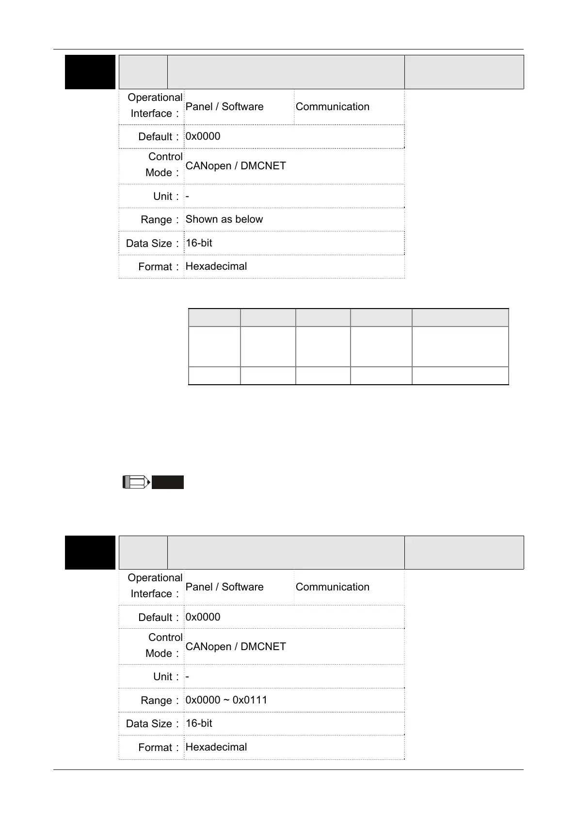 Range -0 ~ 1 0 ~ F 0 ~ F 0 ~ 1