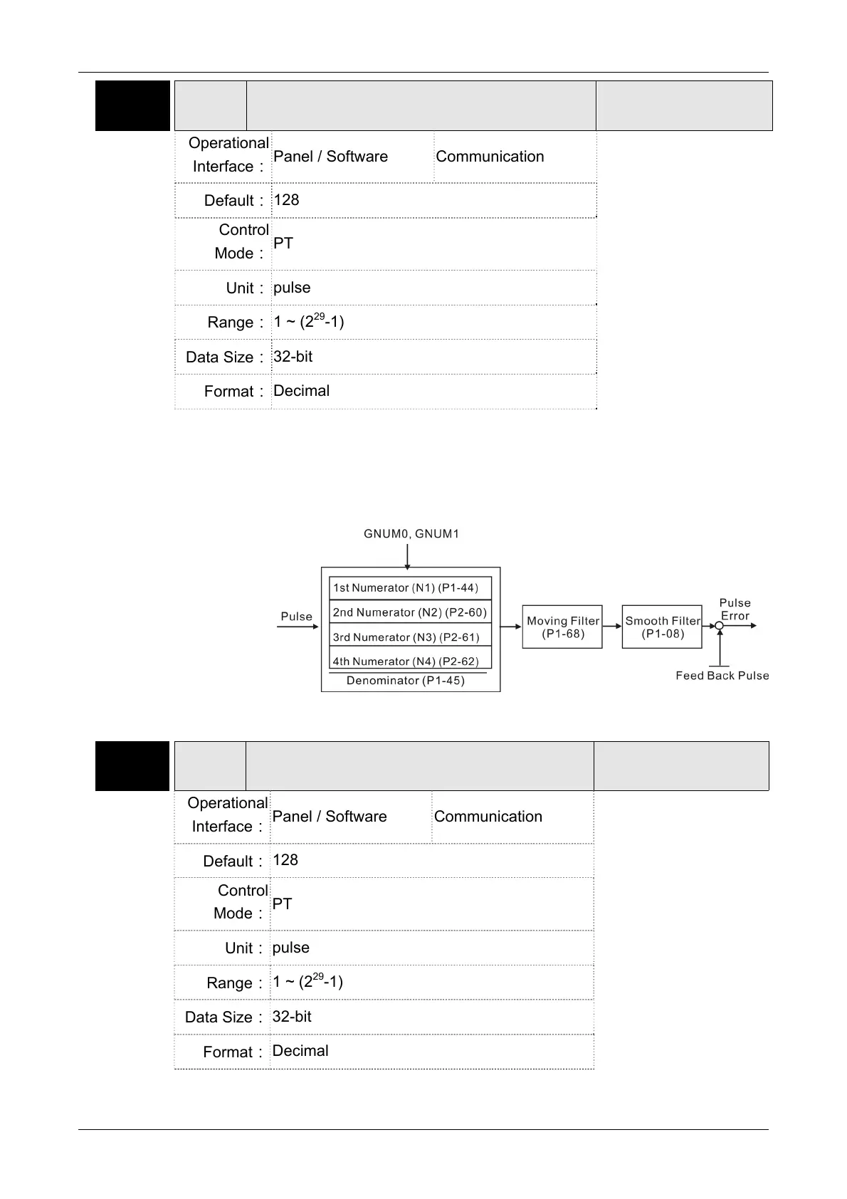 electronic gear ratio. Please switch GNUM0 and GNUM1 in stop status