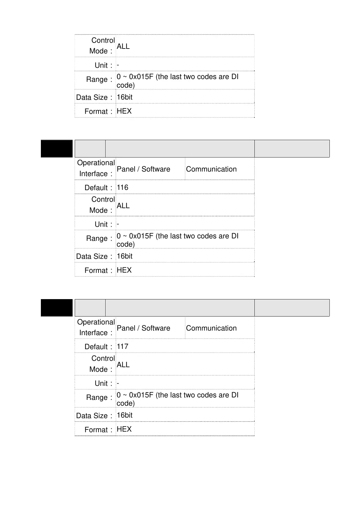 0 ~ 0x015F (the last two codes are DI