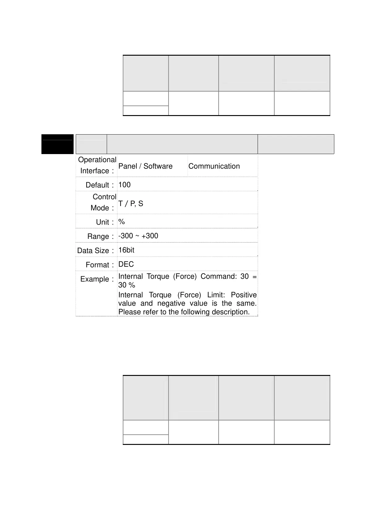 Internal Torque (Force) Command: 30 =