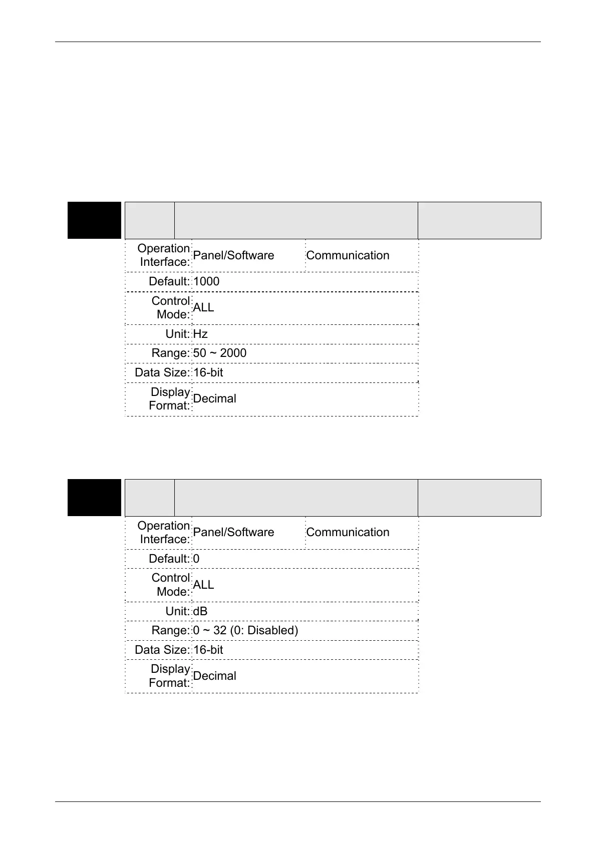 Settings: The first setting value of resonance frequency. If P2-24 is set to 0,