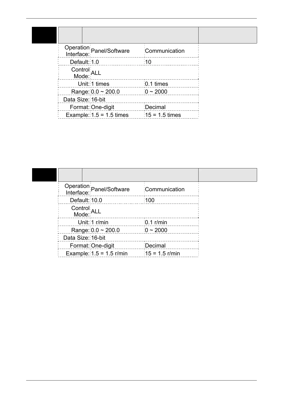 Range: 0.0 ~ 200.0 0 ~ 2000