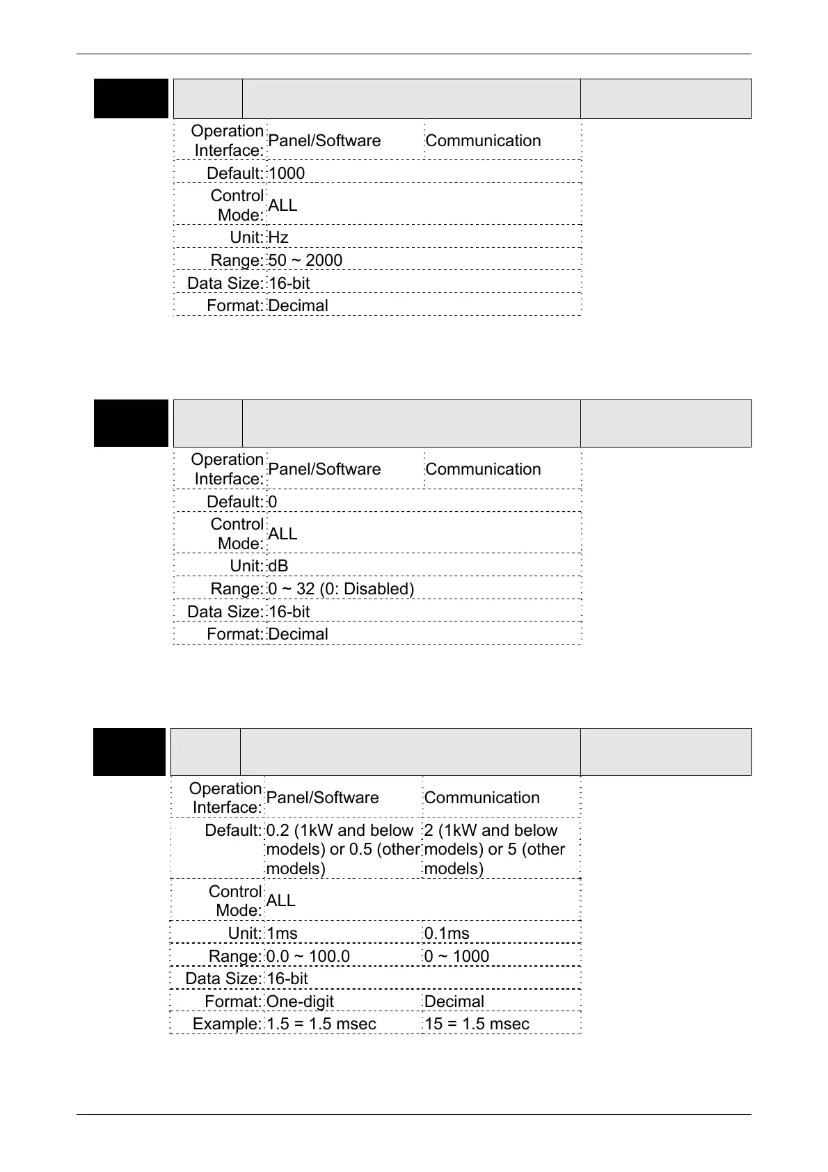 Settings: The first setting value of resonance frequency. If P2-24 is set to 0,