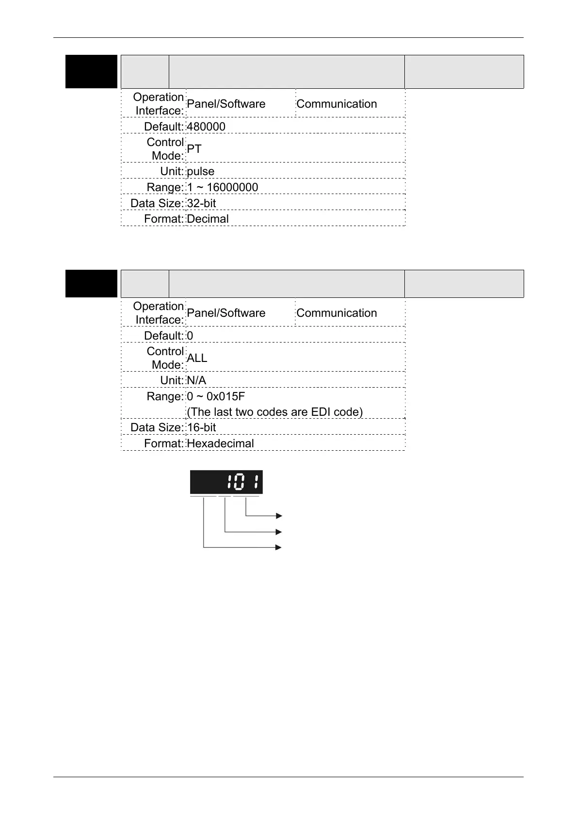 servo drive error display (P0-01).
