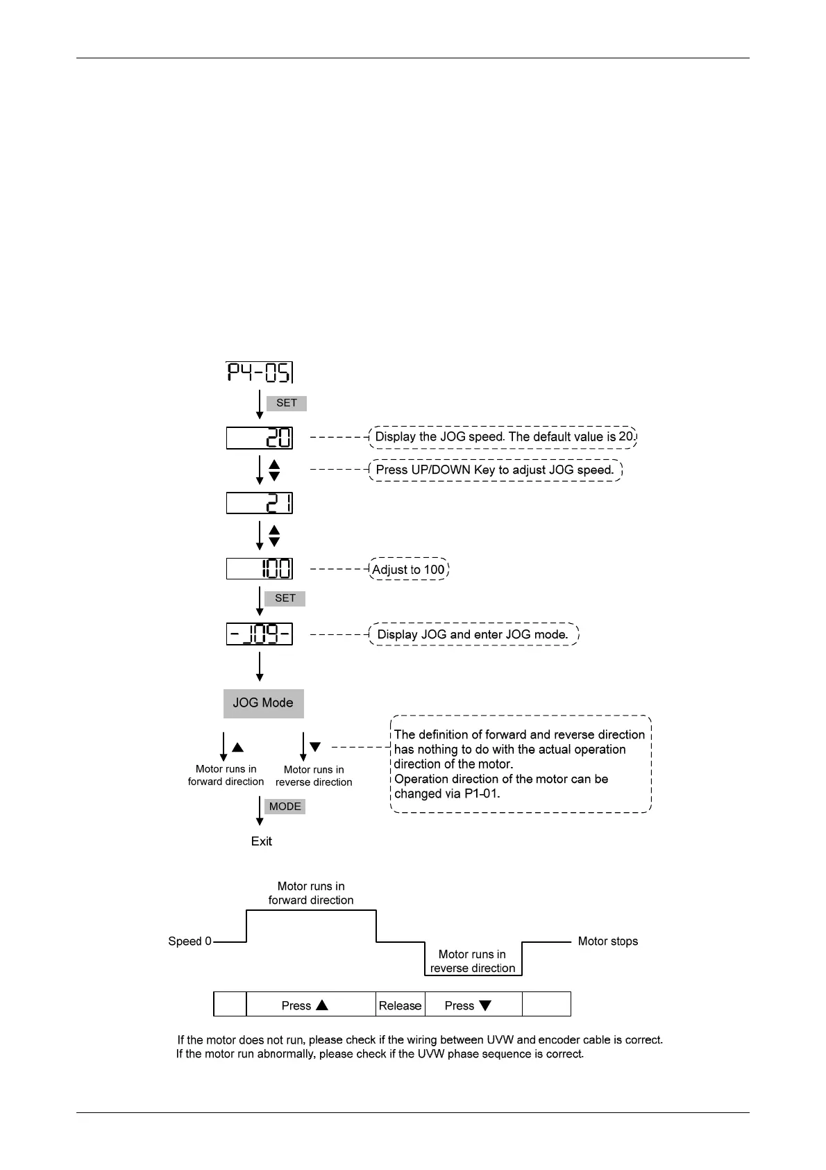 STEP 2: Set P4-05 as JOG speed (Unit: [r/min]). After setting the desired JOG speed,