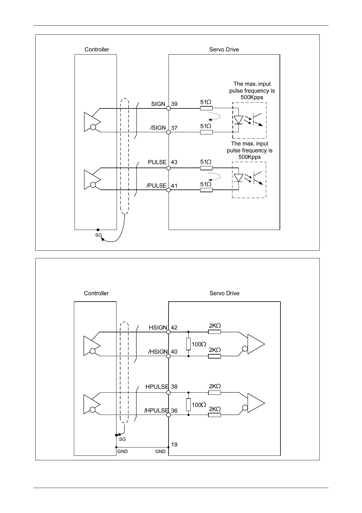 C4-2: High-speed pulse input (Line driver) can only apply to 5V power. Never apply to 24V power.