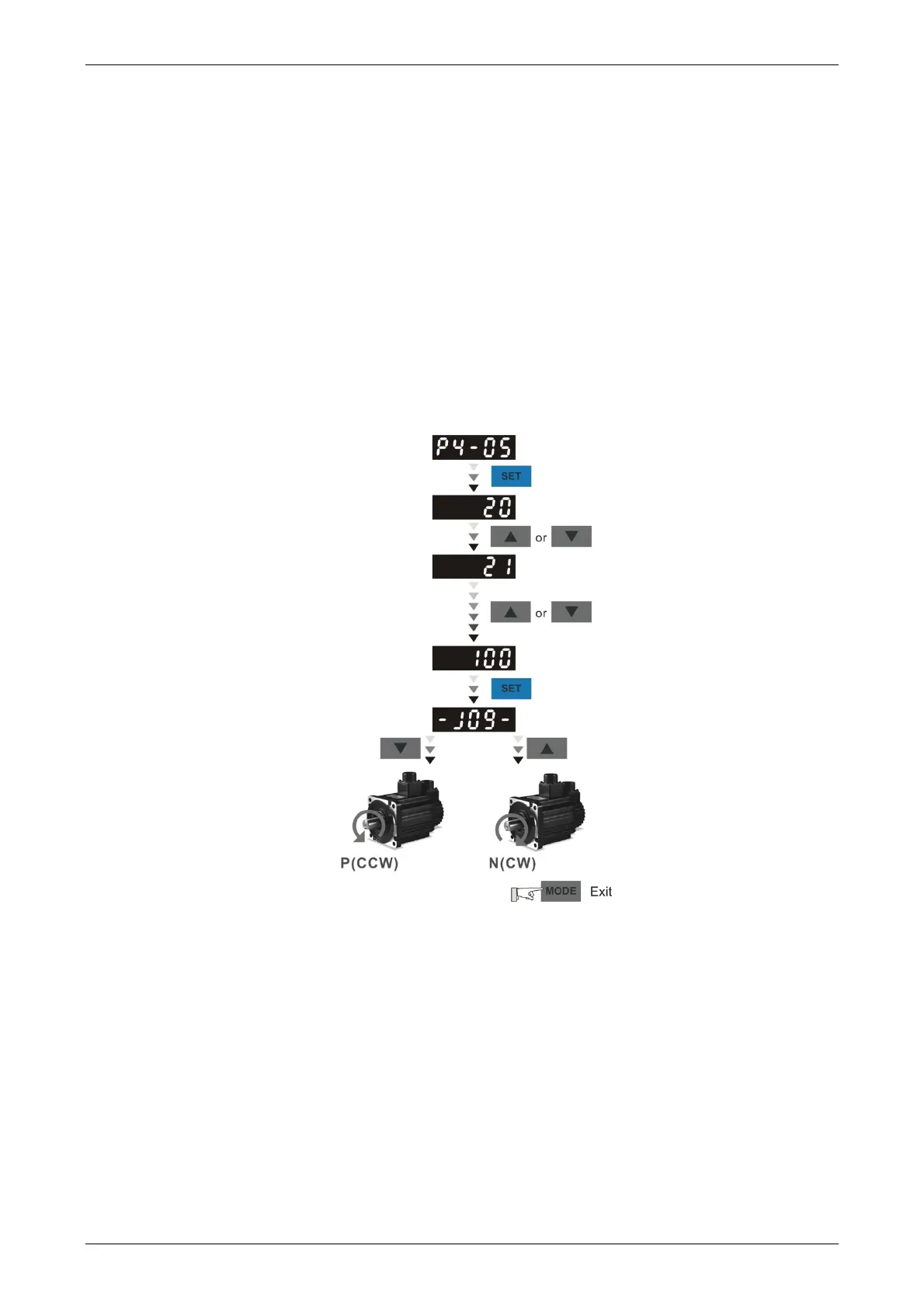 When it is in Parameter Mode, select P4-05 and follow the setting method below for JOG