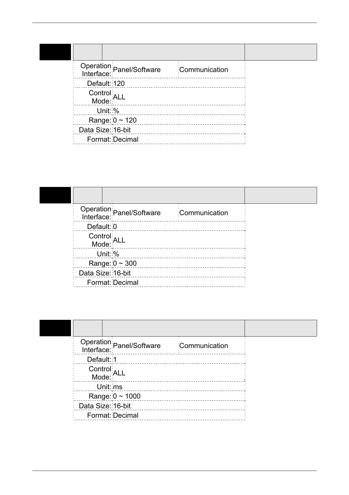 Settings: Setup protection level (for the percentage of rated torque, set the